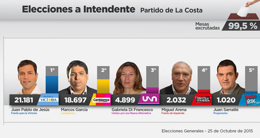 De los primeros cómputos surgió una ventaja confirmada de este joven de 29 años surgido del Pro al que la comunidad dio su respaldo por sobre la fuerza vecinalista Propin, que proponía como candidato a Maximiliano Santini, y relegó al actual jefe de gobierno, Pedro Elizalde.