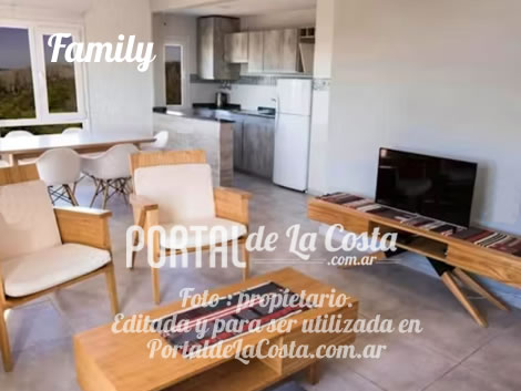 2 adultos + 2 niños de hasta 12 años en 1 habitación con sommier queen matrimonial, living comedor (mesa y sillas), cocina con diván cama, carro cama, 1 baño y cocina completa. Unidad amplia y luminosa con mobiliario de primera línea de estilo nórdico, y un equipamiento pensado en los huéspedes.