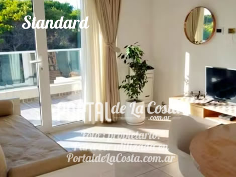 4 adultos + 1 niño de hasta 12 años en 1 habitación principal con sommier matrimonial + 1 habitación con 2 sommiers individuales + living con 1 sofá cama + cocina totalmente equipada + balcón terraza. La tarifa incluye: ropa de cama + toalla y toallòn + amenities (jabòn, champù y/o acondicionador). Unidad amplia y luminosa con mobiliario de primera línea de estilo nórdico, y un equipamiento pensado en los huéspedes.